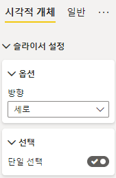슬라이서를 사용하여 특정값을 선택하면 선택된 값을 보여줌