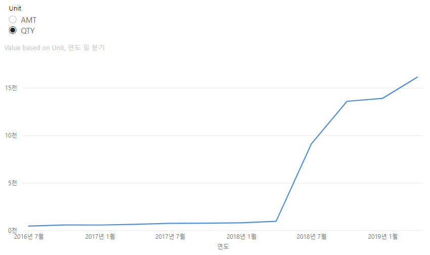 슬라이서에 Unit 테이블을 추가, Unit에서 Qty가 선택되면 Sales Qty를 아니면, Sales Amt가 선택되는 것을 확인할 수 있음