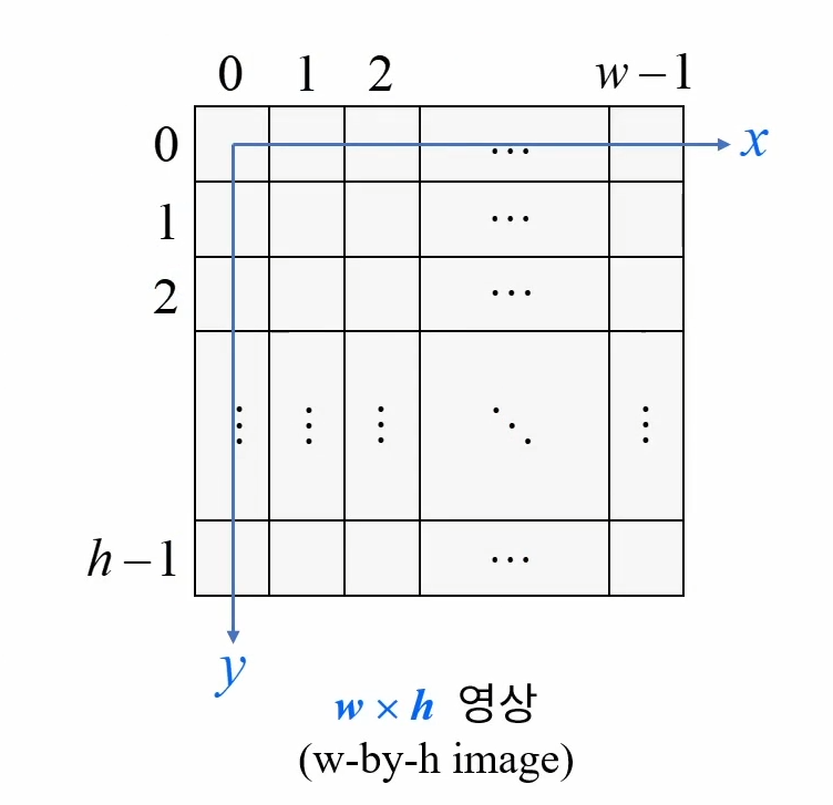 Pixel이 바둑판 모양의 격자(2차원 배열)에 나열되어 있는 형태.
