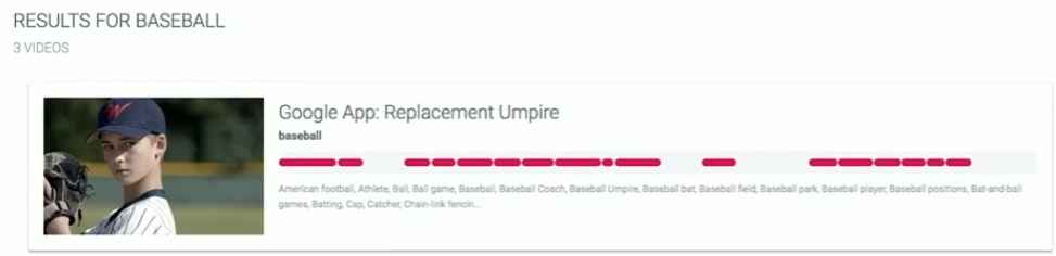 - 구글 클라우드 비전 API : 검색어와 관련된 영상 뿐 아니라, 어느 부분에 관련된 내용이 있는지 까지 알려 준다.