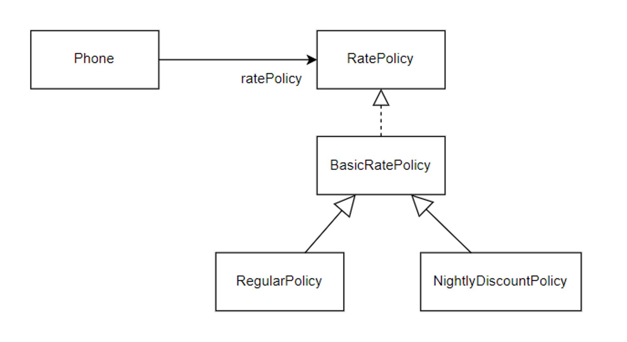 상속을 이용해서 기본 정책과 부가 정책을 구현해보자. 기본 정책은 아래 세 클래스로 구성된다.