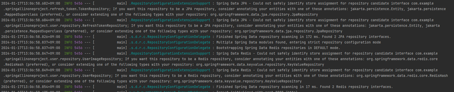 살펴보면 Spring data JPA Repository와 Spring data Redis Repository가 모두