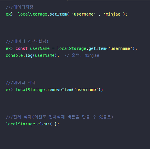 웹 브라우저에서 제공하는 간단한 키-값 저장소이다.
