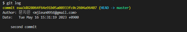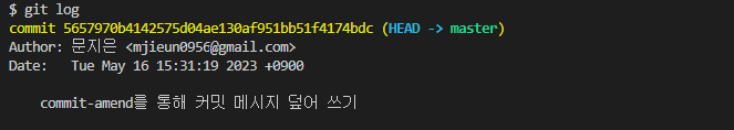커밋 메시지가 변경되며 직전 커밋은 삭제되고 새로운 커밋이 생성됨