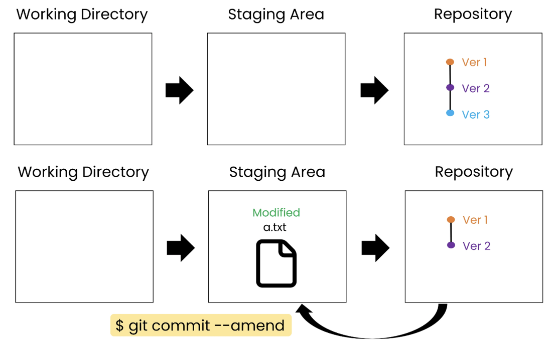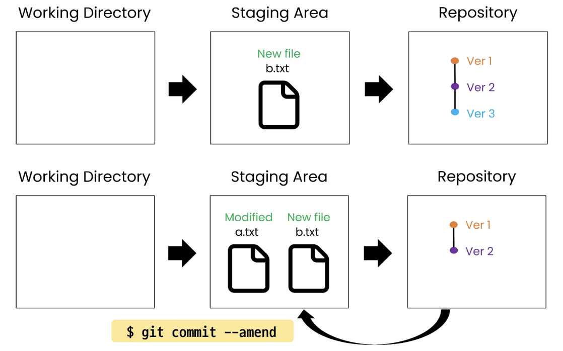 :wq):q!)Staging Area에 새로 올라온 내용이 있다면, 직전 커밋 덮어쓰기