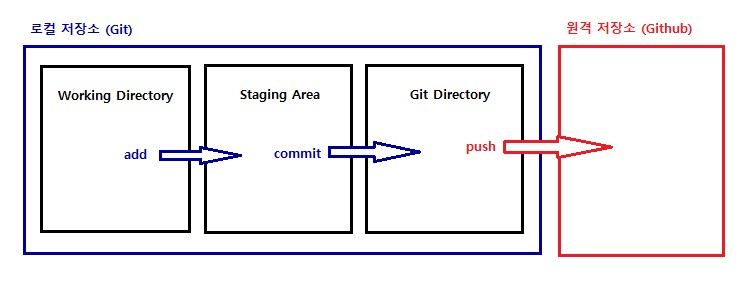 Working Directory : 사용자의 일반적인 작업이 일어나는 곳Staging Area : 커밋을 위한 파일 및 폴더가 추가 되는 곳Repository : Staging Area에 있던 파일 및 폴더의 변경사항(커밋)을 저장하는 곳.git 이라는 숨김 폴더 생성하고, 터미널에는 (master) 라고 표기$ git status