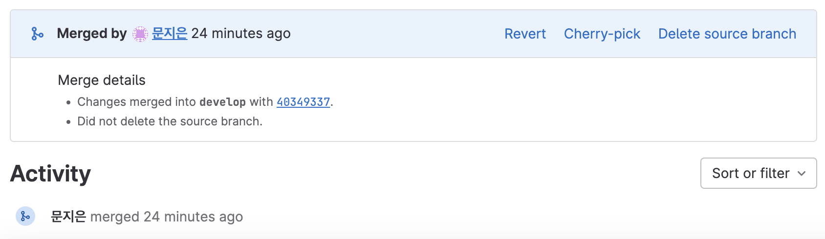 - GitLab에 다시 들어가보면 merge가 잘 되었다고 뜬다..! (신기)