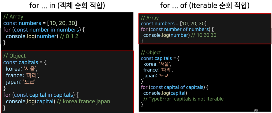 속성 이름을 통해 반복속성 값을 통해 반복const arr = [3, 5, 7]