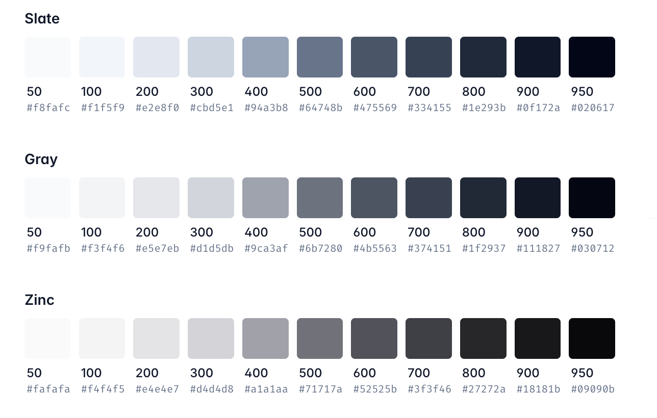 Tailwind 는 다양한 기본 색상들을 제공한다.