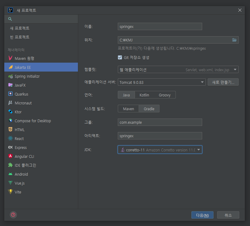 버전 낮춰서 생성하면 그래들이 자동으로 다운로드 된다.