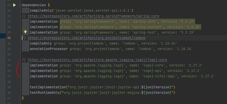 implementation group: 'org.apache.logging.log4j', name: 'log4j-core', version: '2.17.2'
