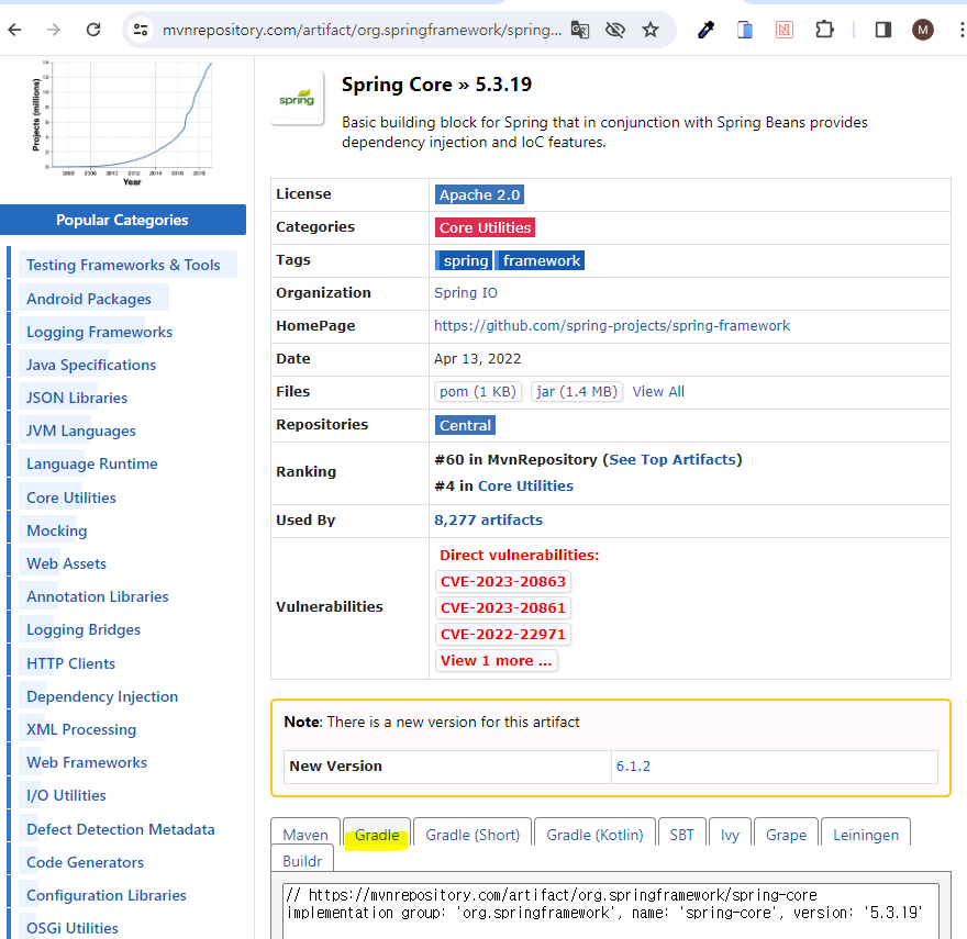 implementation group: 'org.springframework', name: 'spring-core', version: '5.3.19'