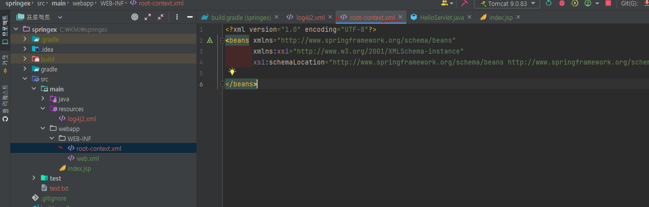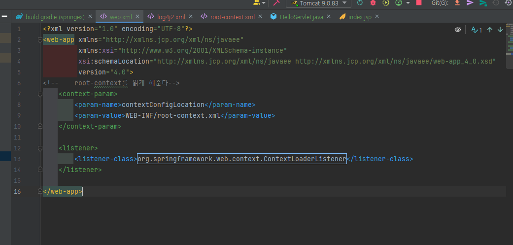 web.inf에서 , 적어서 root-context.xml을 읽게 해준다.