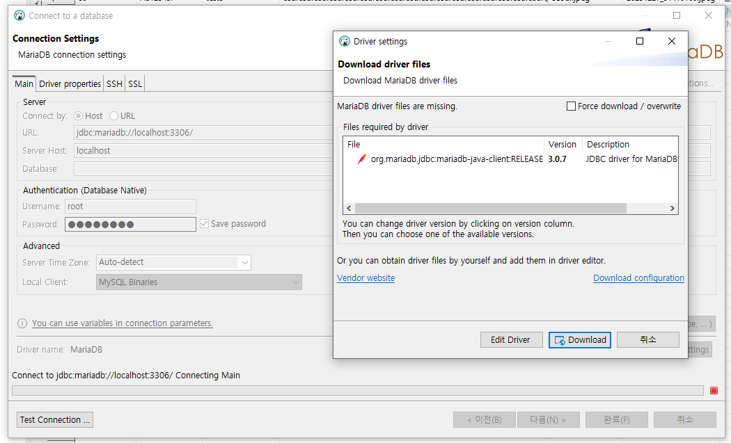 마리아db, 히카리cp 추가(메이븐 리포지토리 검색해서 추가해준다)