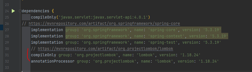 compileOnly group: 'org.projectlombok', name: 'lombok', version: '1.18.24'