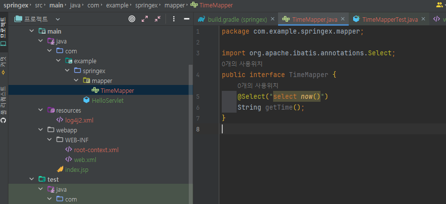 TimeMapper에 대고 알트 엔터 누르면 test도 만들 수 있다.