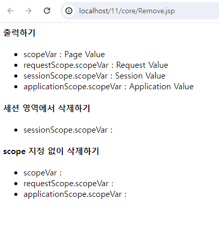 <li>sessionScope.scopeVar : ${sessionScope.scopeVar }</li>