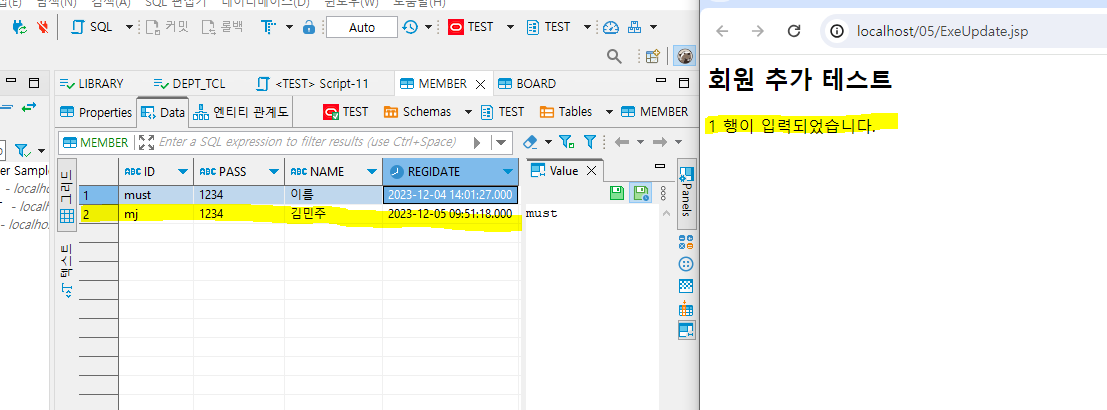 오라클에 만들어둔 MEMBER의 4항목에 들어갈 것이다.