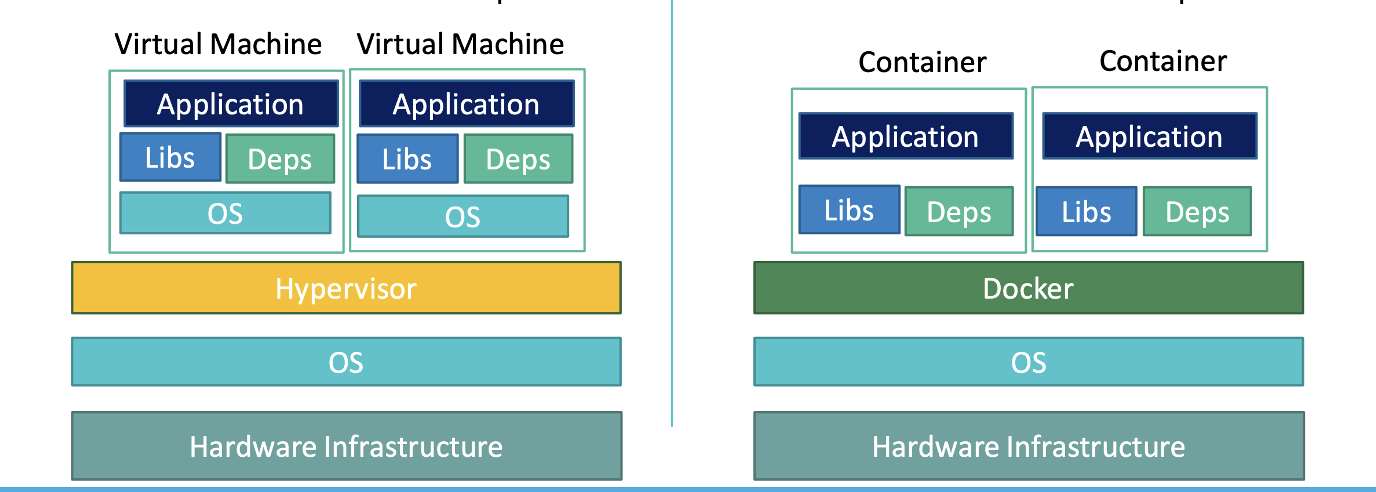 [왼쪽: 도커, 오른쪽: 가상머신]