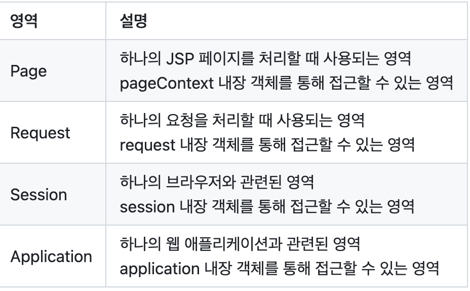 - Page < Request < Session < Application 영역 순으로 범위가 넓다.