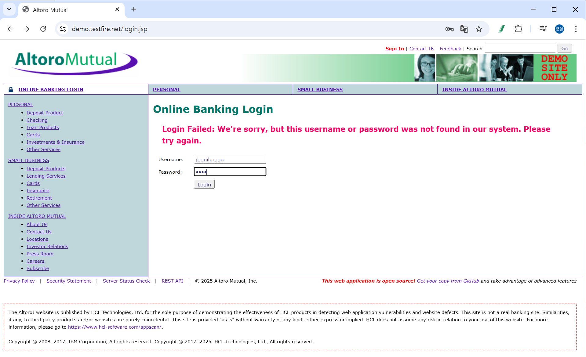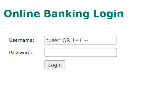 백문이 불여일견. SQL 인젝션 공격으로 해킹을 해보도록 하자. 아래는 해킹 연습을 할 수 있는 가짜 은행사이트이다.