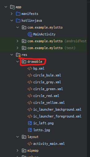 -> ํ๋ฉด์์"btn_clear"๋ผ๋ ID์ ํ์ ์ด ๋ฒํผ์ธ๊ฒ ์ฐพ์- R.drawable.circle_yellow