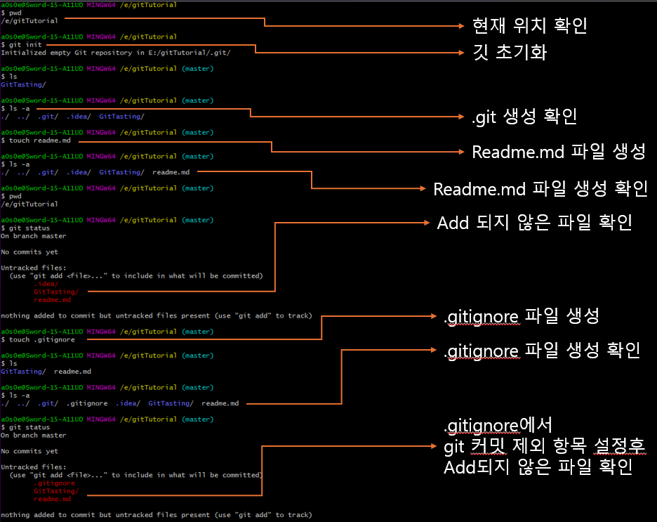 실습 : git bash>>>