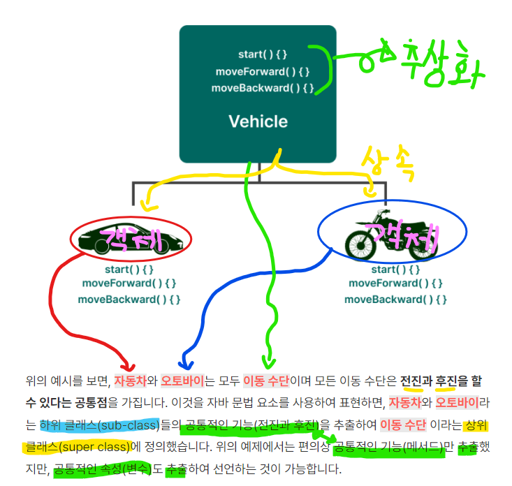 추상화(Abstration): 공통성과 본질을 모아 추출 = 객체의 공통적인 속성(변수)과 기능(메소드)을 추출하여 정의하는것