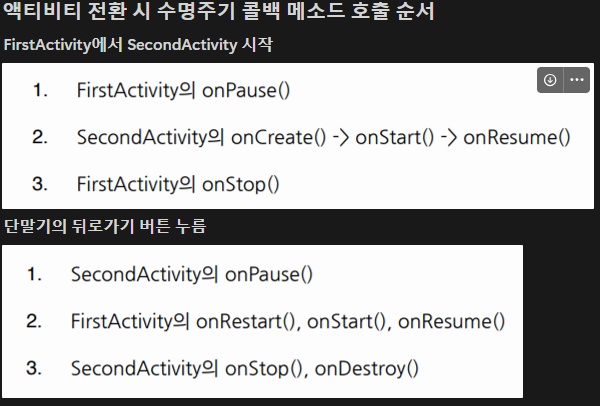 - 액티비티 생명 주기