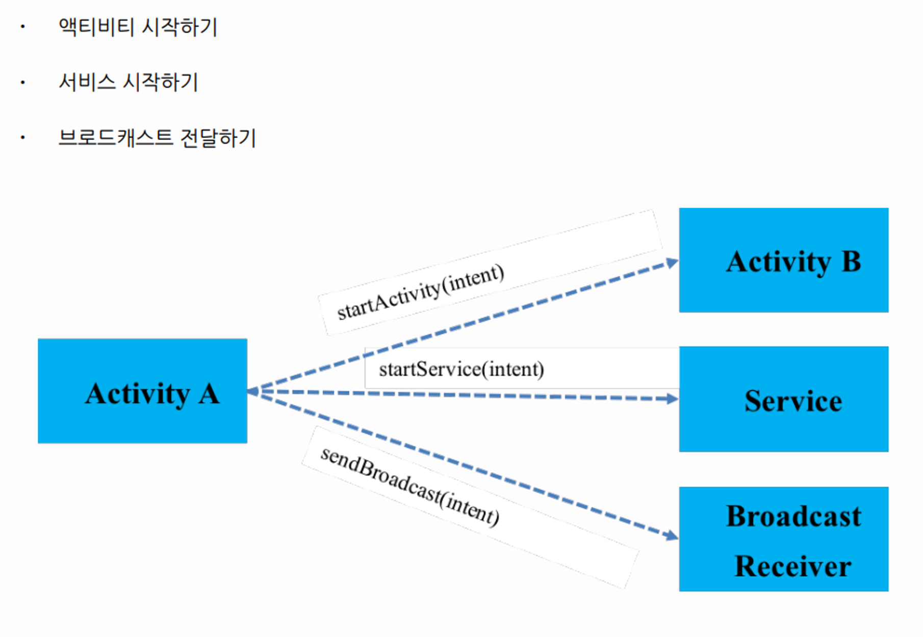 - 인텐트 - 일종의 메시지 객체