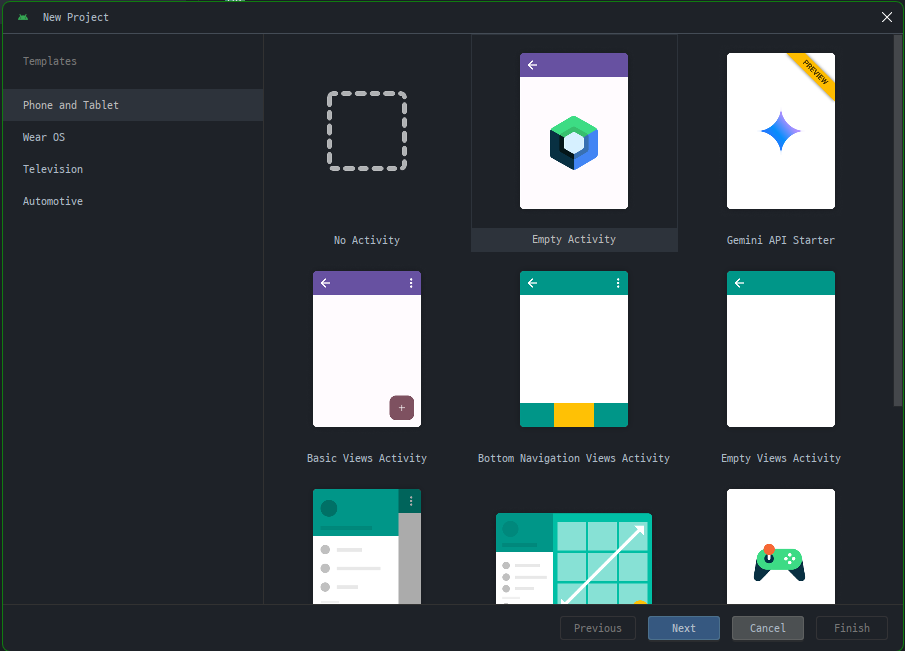 2. Empty Activity 선택