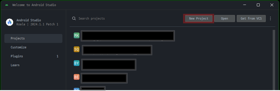 1. New Project 선택