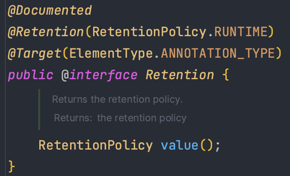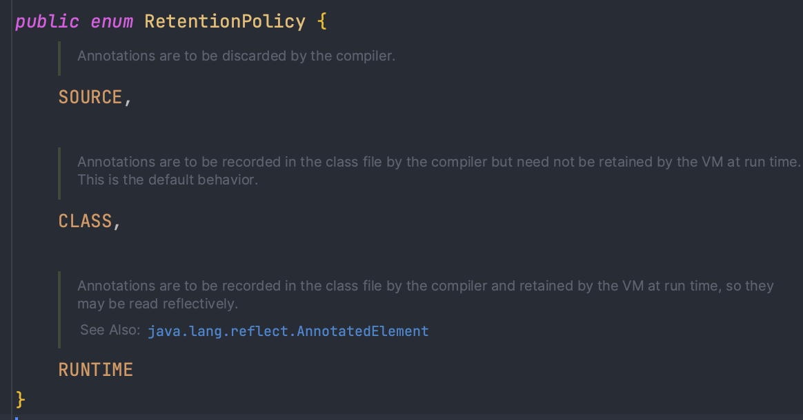 ์ด ์ด๋ค ๋ฒ์์ ์ ์ฉ๋๋์ง ์ค์ ํ๋ค.@Retention