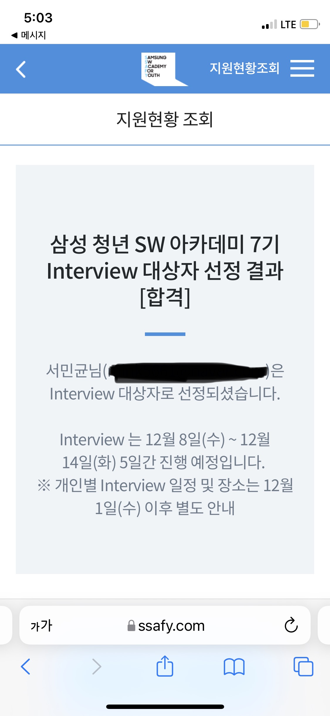 한달에 100만원씩 지원받으면서 체계적인 교육을 해주는 교육이기에 또 중간에 코딩테스트를 봐서 일정 레벨을 취득하면 삼성 지원 시 서류 면제였나?그런 제도도 있어서 좋은 기회라서 면접을 열심히 준비할 생각이다.