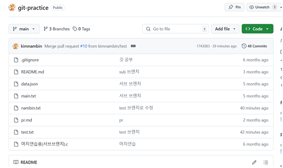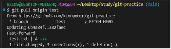 - pull : 원격 저장소의 변경 사항을 가져온 후