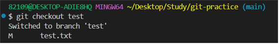 - git checkout "브랜치 이름" : 해당 브랜치로 이동