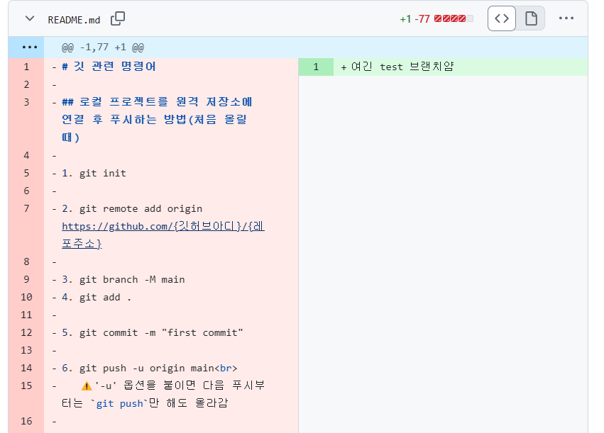 깃허브 업로드(pull request) -> 깃허브 병합 ->깃 동기화(git pull) 이순으로 볼 수 있다