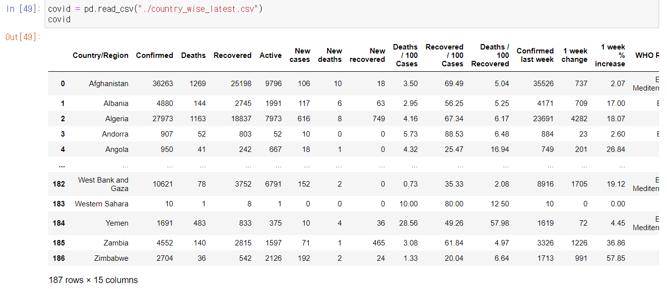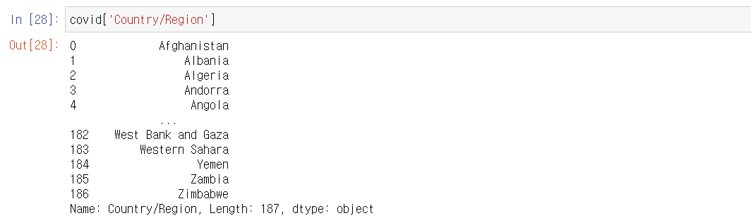 - df['column_name'] or df.column_name 두 가지 방법으로 인덱싱 할 수 있는데, 열 이름에 공백이 포함될 경우 df.column_name은 사용하지 못한다.