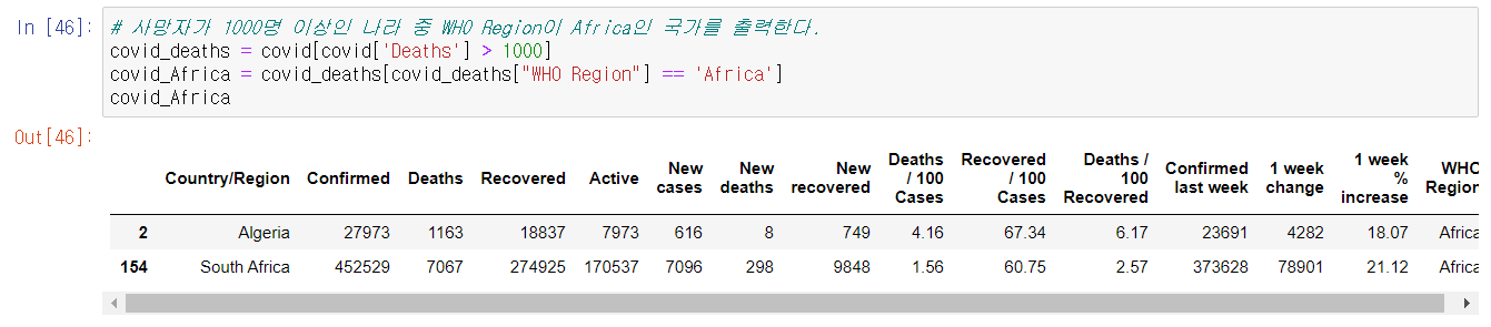 - 조건식을 사용하여 조건에 부합하는 data만을 추출할 수 있다.