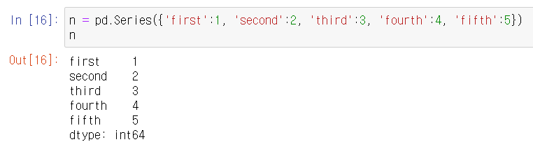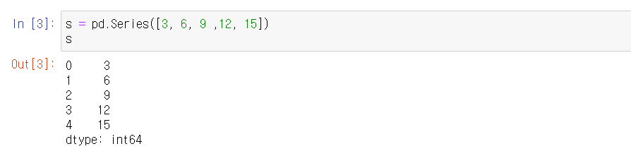 pd.Series()함수를 사용하여 생성한다.