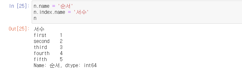 - Series의 이름과 Index의 이름을 지정할 수 있다.
