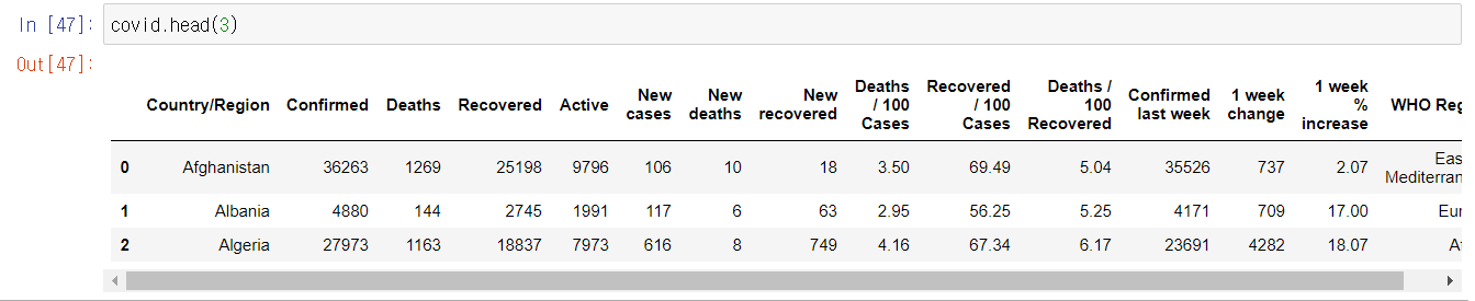 - DataFrame 모든 값을 참조하기에는 양이 너무 많아 일부분의 값들만 참조하고자 하는 경우가 있을 것이다. 그럴 경우에는 특정 함수를 사용하여 해결할 수 있다.