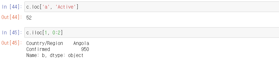 - 이름 인덱스 이용하기 .loc[row, col]