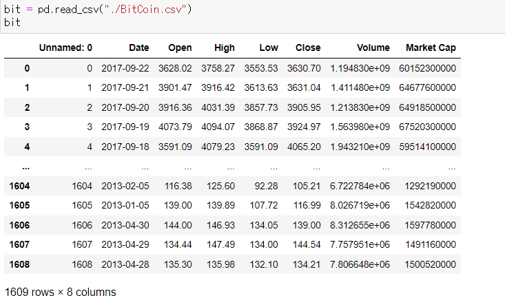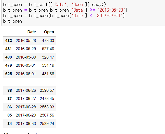 필요한 데이터만 추려서 bit_open 데이터 프레임을 만들었다.