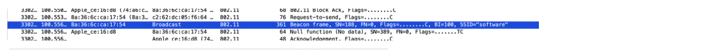 위 그림과 같이 실제로 잡고자 하는 software가 Beacon Frame을 송신하고 있음을 확인할 수 있다. 송신하고 있으니 다음은 맞는지 확인하는 절차가 있어야 한다.