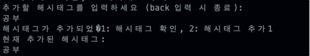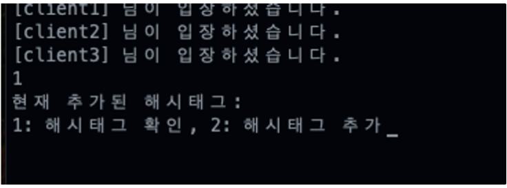 클라이언트 1은 해시태그 #공부를 추가합니다.