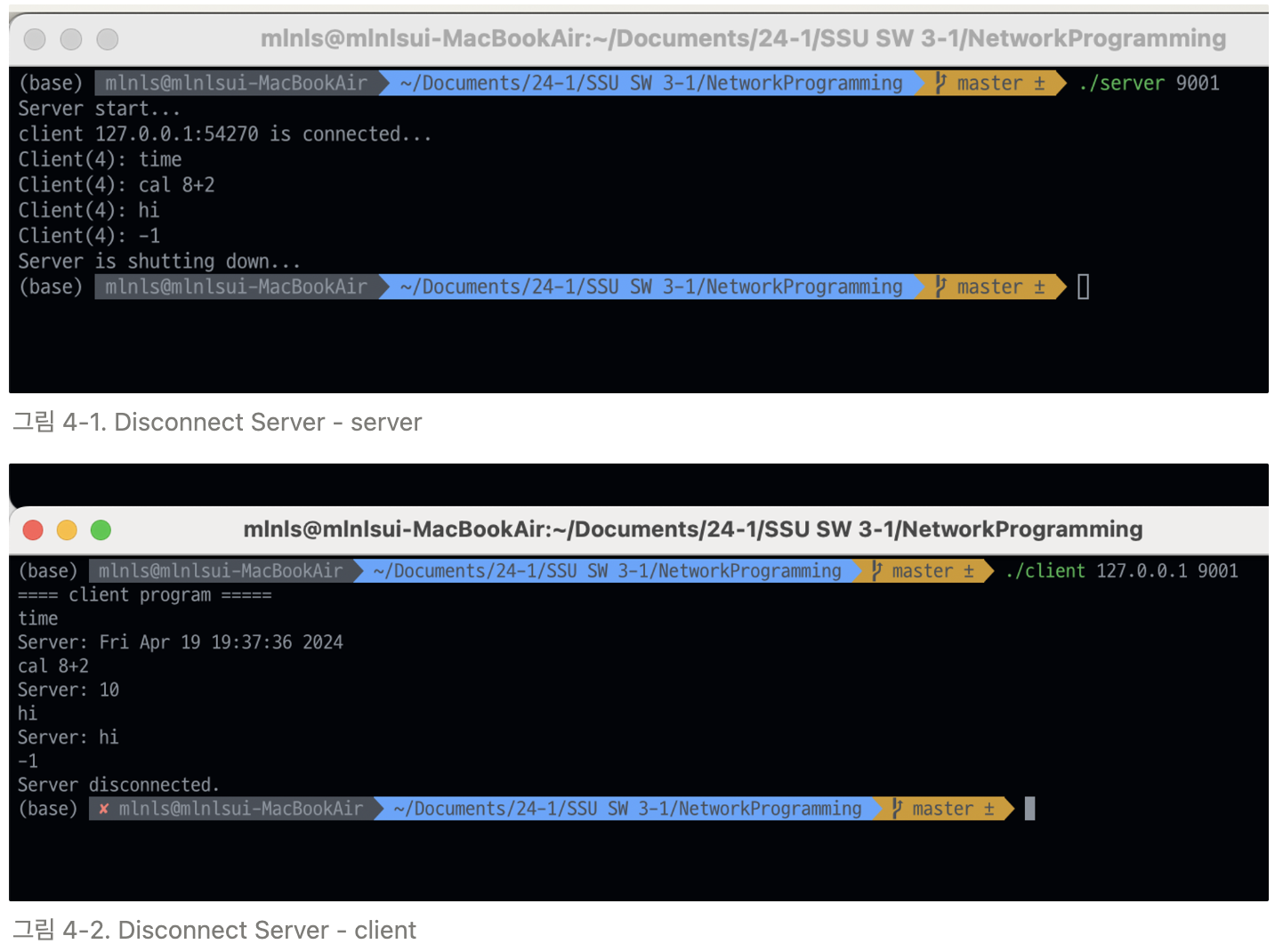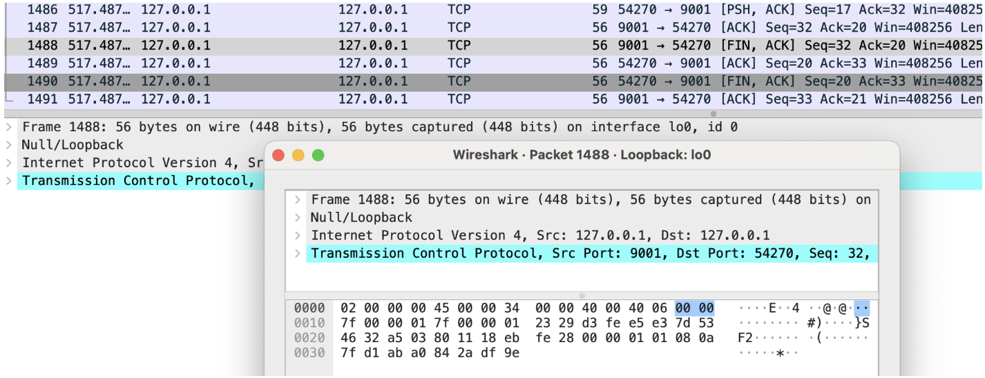 위 그림과 같이 -1을 호출하여 서버를 종료시키자 FIN ACK를 보내며 TCP 연결을 마무리한다