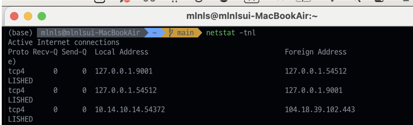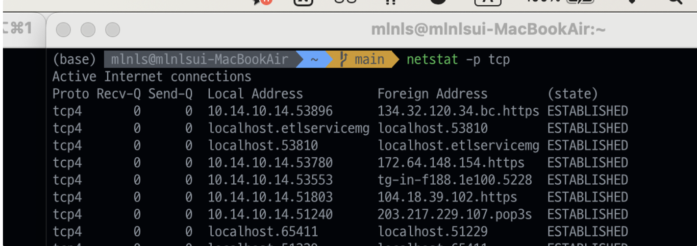 이처럼 netstat을 통해서도 TCP 통신중인 외부 port number을 확인할 수 있다