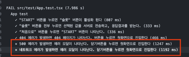 에러모달 테스트가 실패한다.