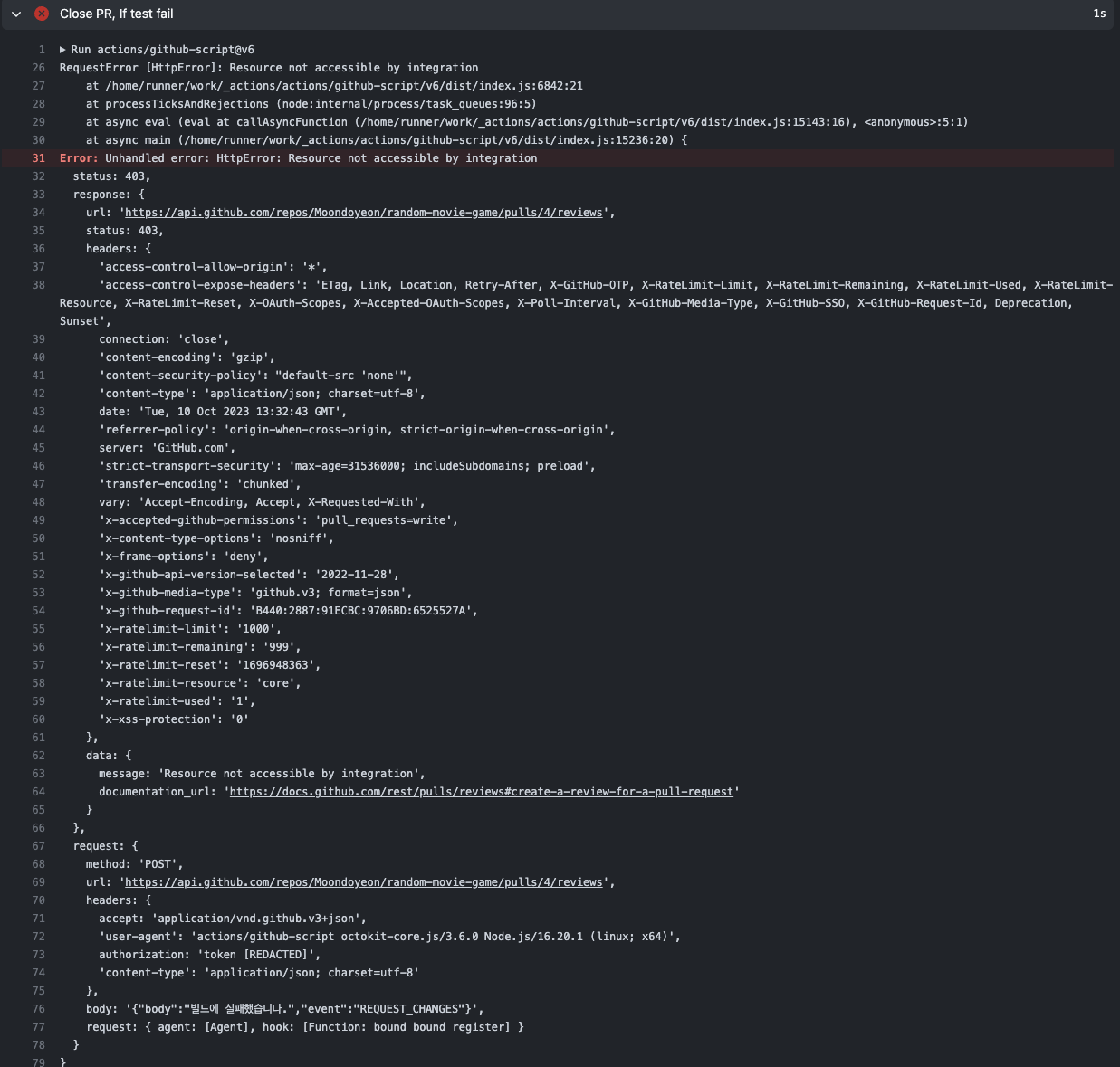 [Github Actions] CI - 빌드 실패 시 Pull Request 닫고 코멘트 등록하기